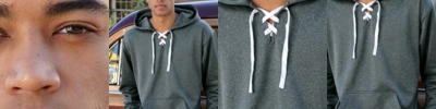 • Hooded, with flat drawcord, antique nickel eyelets