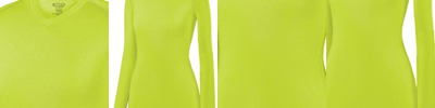 84% polyester/16% spandex knit ; Odor resistant ; Wicks moisture away from the body ; Ultra tight Ladies' fit ; Pad print label ; Self-fabric V-neck collar ; Raglan sleeves ;