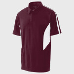 100% polyester; Smooth knit with true hue technology™ on front and back panels; 92% polyester /8% spandex pinhole mesh inserts for breathability ; True hue technology™ prevents dye migration; Wicks Moisture; Pad print label ; Two-button placket; Contrast color inserts and piping ;
