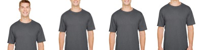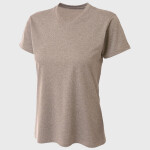 100% polyester heather tee, 4.2 oz. per square yard; Odor resistant and stain release fabric for easy care; Moisture management for all season comfort; Neck seam cover-stitched for extra durability; Tag-free neck.