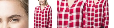 3.4 oz., 100% cotton yarn-dyed poplin; semi-fitted styling; contrast checked pattern; narrow soft-collar; roll sleeve option with button and tab fastening on upper arm; single button cuff and sleeve guard for long-sleeve styling; curved hemline; bust and back dart for feminine fit; Oeko-Tex® Standard 100 certified; WRAP certified;
