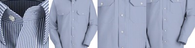 - Three matching cross-stitched buttons on a box-stitched placket