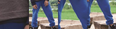 - Coverstitched rib waistband and cuffs