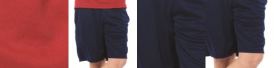 - Contrast color raglan sleeves, collar, "V", and waistband